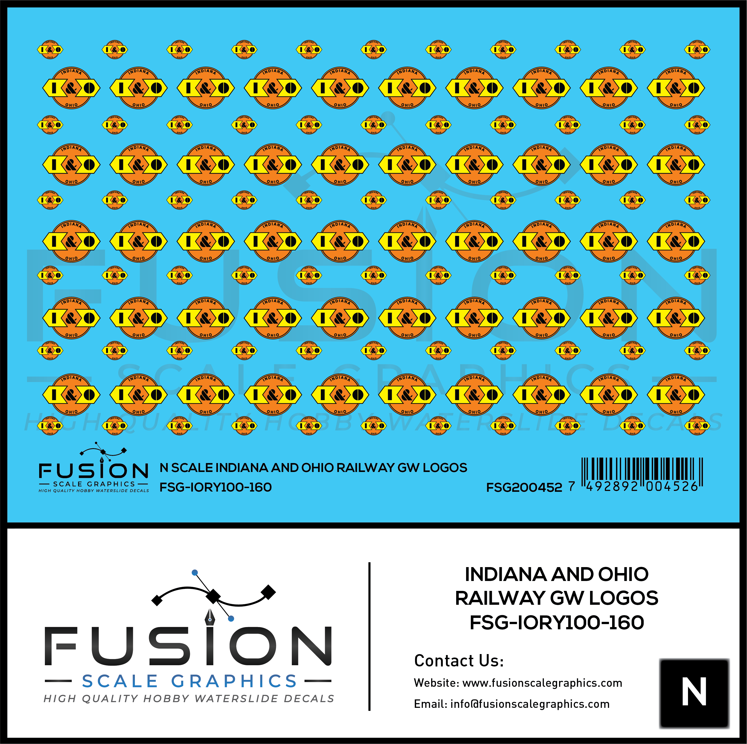 N Scale Indiana and Ohio Railway GW Railroad Logos Decal Set