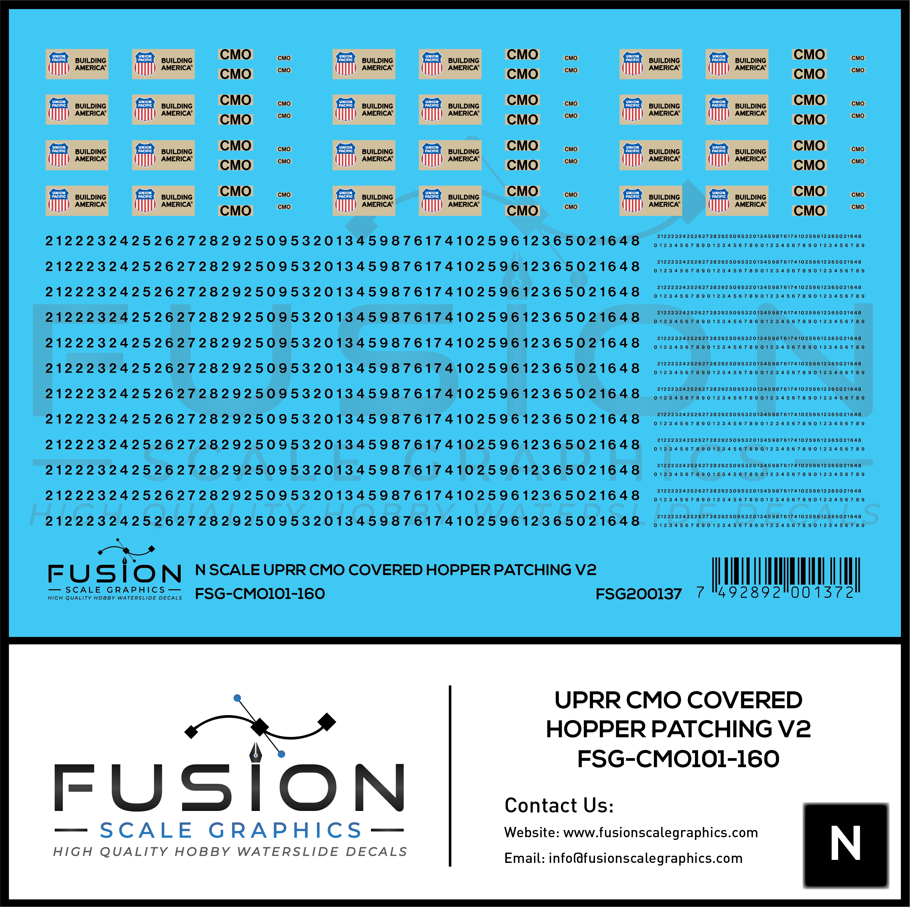 N Scale UPRR CMO Covered Hopper Patching V2 Decal Set