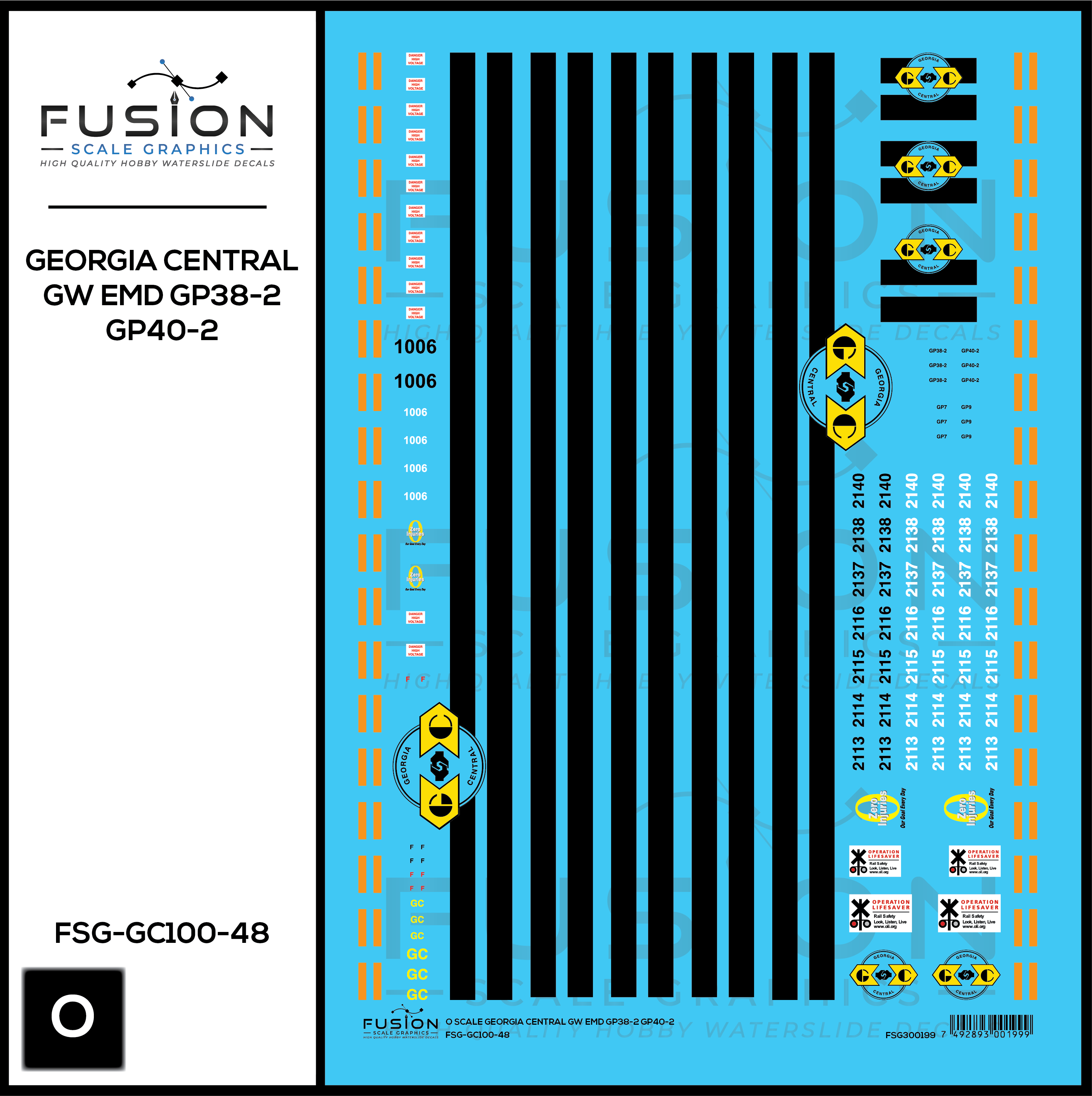 O Scale Georgia Central GW EMD GP38-2 & GP40-2 Locomotives Decal Set