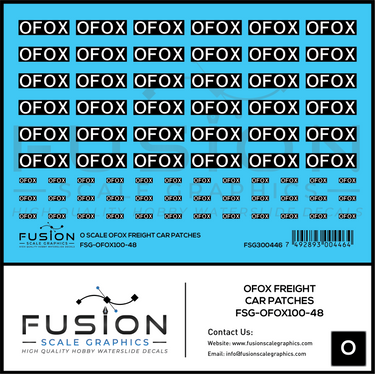 Ideal for scale model railroaders, the OFOX White/Black Freight Car Patch Outs Decal Set is designed to bring your layouts to life. Whether you're a beginner or a seasoned enthusiast, these decals offer easy application and durability, making them perfect for creating a weathered and authentic look on your O Scale freight cars. Elevate your modeling experience with decals that meet the highest standards of craftsmanship and detail.