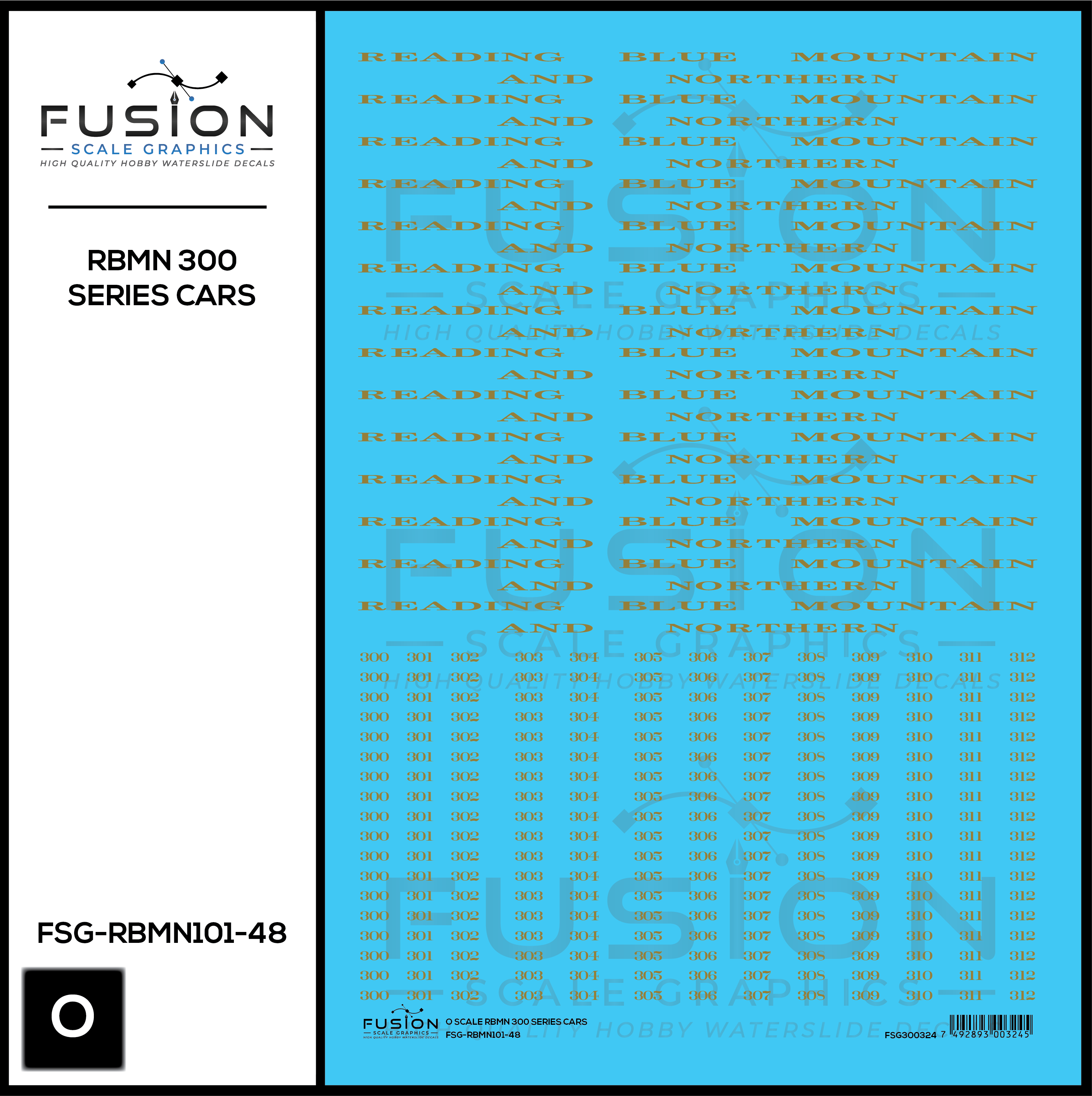 O Scale Reading Blue Mountain & Northern 300 Series Passenger Cars Decal Set