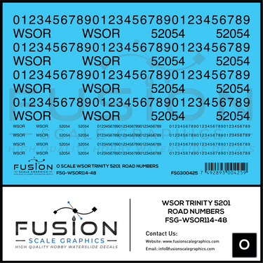 O Scale Wisconsin Southern Trinity 5201 Road Numbers Decal Set