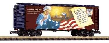 The Betsy Ross Reefer is the first design in our new American Traditions series, weaving together many significant icons of American history, culture, and traditions- things which have contributed to our society and heritage. We have spared no expense in commissioning completely original fine artwork, vividly preproduced on the car as only PIKO can bring you. ÂÂÂ