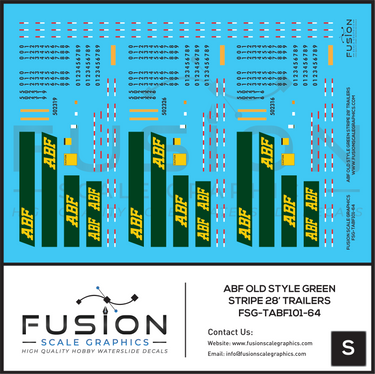 S Scale 1:64 ABF Freight Old Style Green Stripe 28' Truck Trailers Decal Set