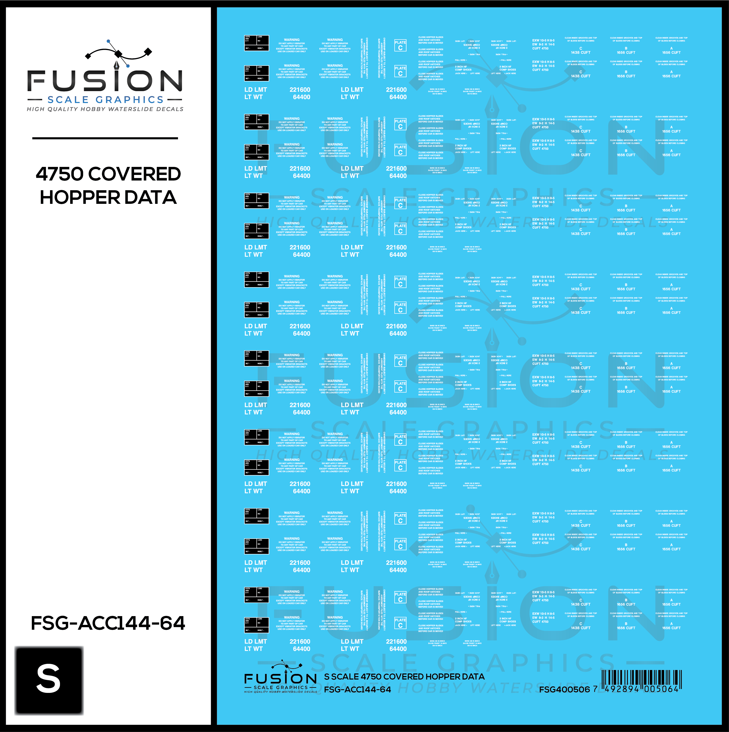 S Scale 4750 Covered Hopper Data Decal Set