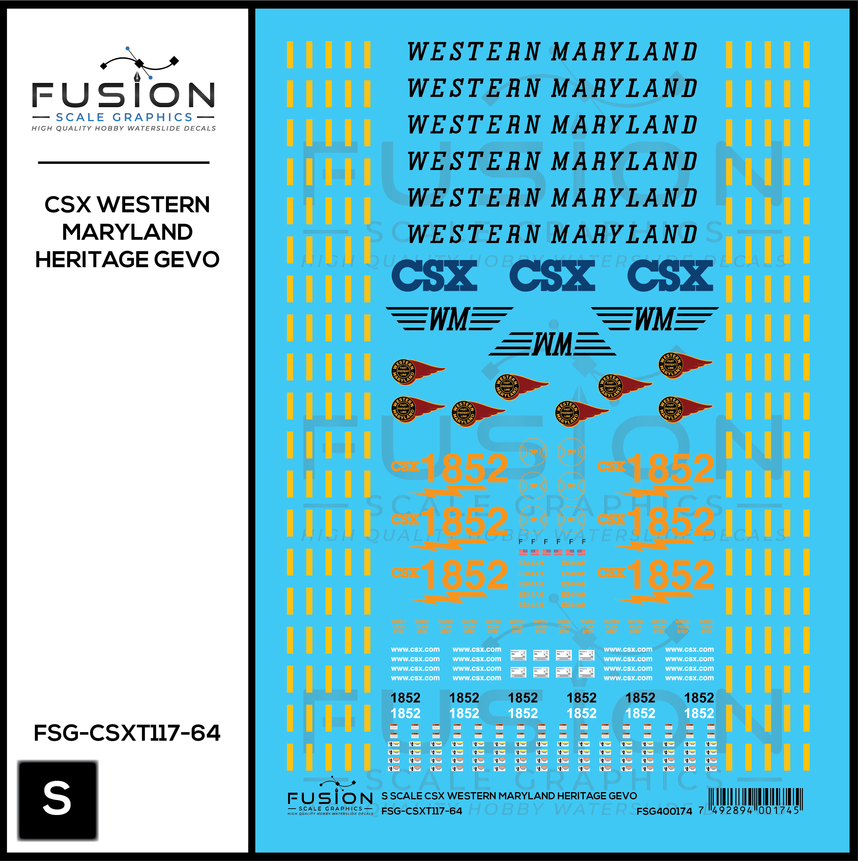S Scale CSX 1852 W&M Western Maryland Heritage ES44AH Locomotive Decal Set