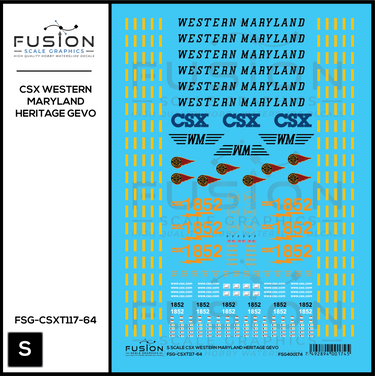 Bring the powerful and historic CSX 1852 W&M Western Maryland Heritage ES44AH locomotive to your S scale railway! This decal set includes all the intricate details and markings to make your model truly stand out. Showcase your passion for trains with this high-quality decal set.