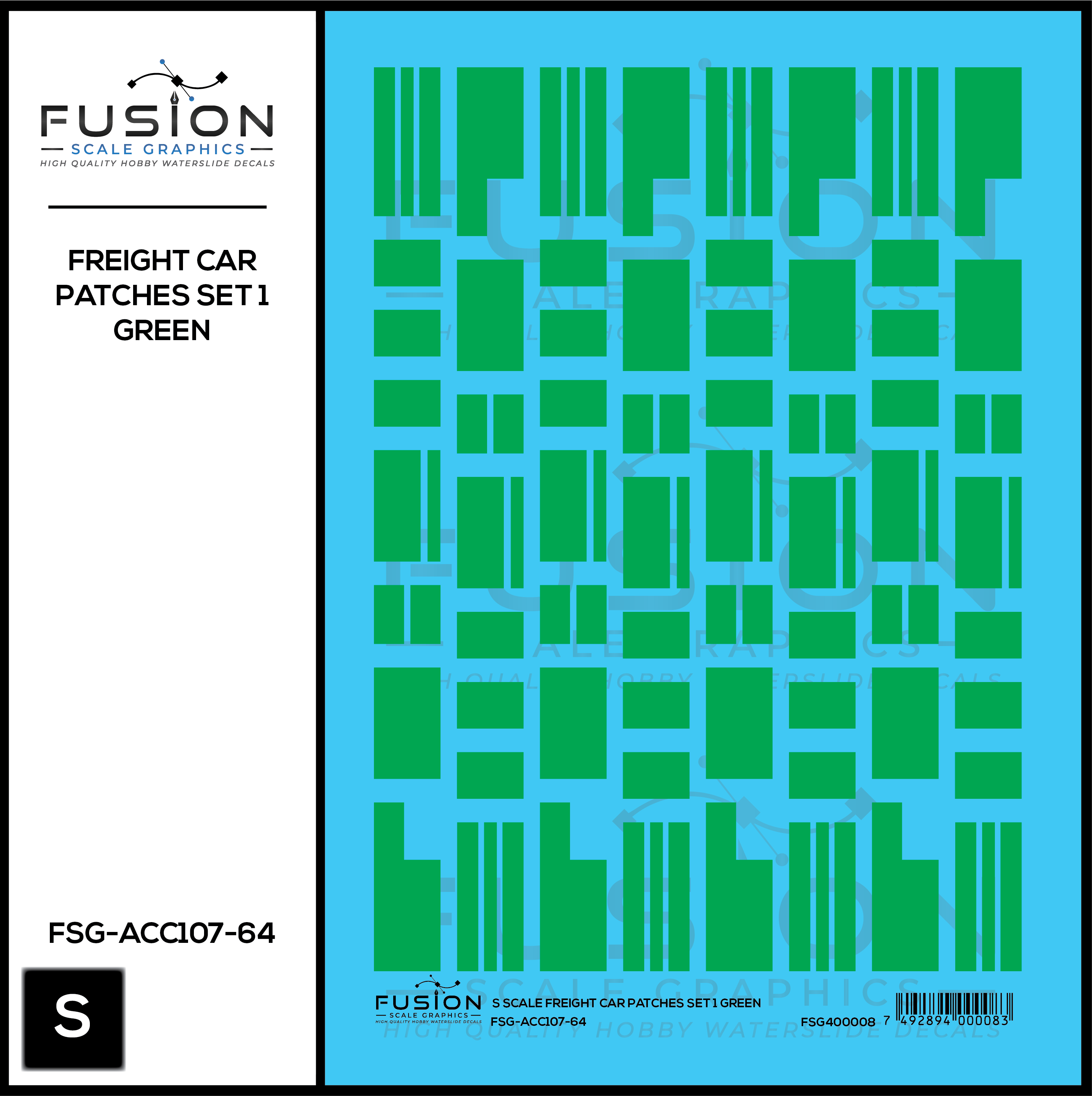 S Scale Freight Car Patches Set 1 Green Decal Set