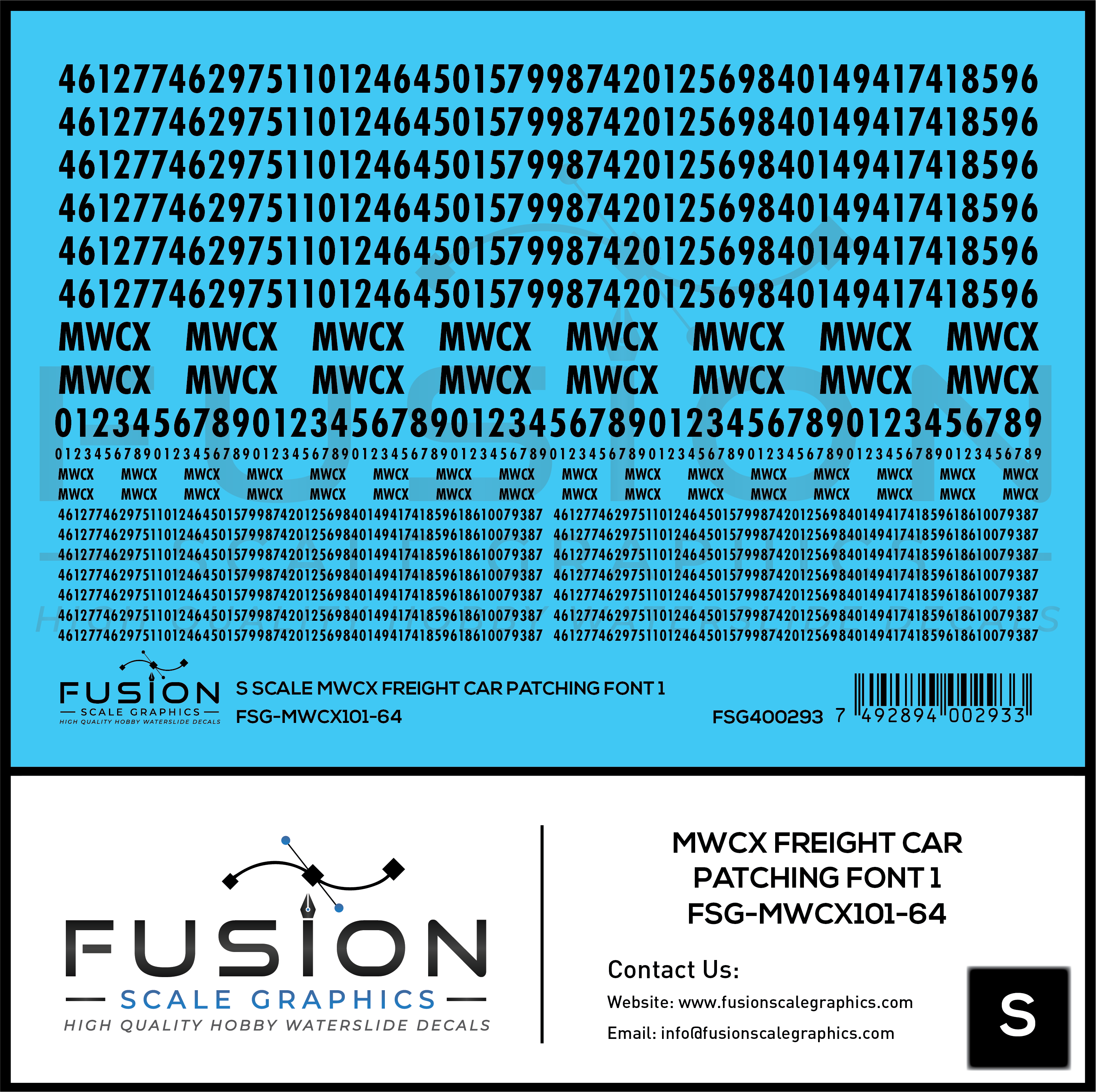 S Scale MWCX Freight Car Patching Font 1 Decal Set