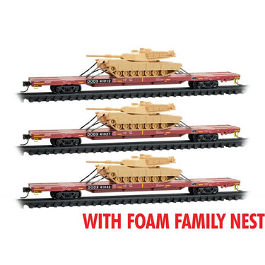 Micro Trains N Scale DODX Abrams Tank Flat Cars 3 Pack