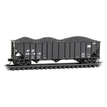 Micro Trains Line N Scale Penn Central 100-Ton 3-bay Open hopper Rib Sides, w/ Coal Load RD# PC 483187