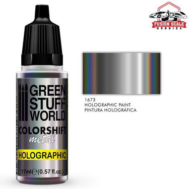 Holographic Paint An alcohol-based paint with microparticles which catch light reflections of various wave lengths, creating a bright rainbow effect with an impressive multi-coloured iridescent and metallic finish. For use, choose any gloss colour for the basecoat. The finish will change depending on the amount of layers applied, the more layers the more intense the metallic finish will be, but too many layers may diminish the holographic effect. The microparticles on the surface will reflect the rainbow effect when exposed to any light source. Gloss varnish will increase the effect, whilst matt varnish will diminish it. It is not required to dilute. Valid only for airbrush. Contains 17ml of Holographic Paint.