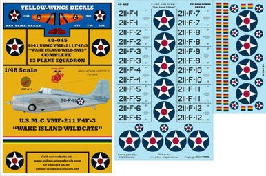 1/48 Yellow Wings Decals USMC F4F-3 VMF-211 Wake Island Wildcats
