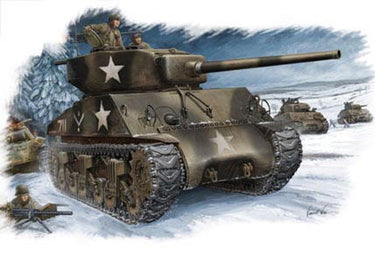 At the heat of WW2, the M4 medium series mounting the 75mm gun are considered to be the best tank around by the US army. When facing with the new German Panther and Tiger tanks even the M4 series needed to upgrade its gun. The new 76mm M1 tank gun has far better anti armor capabilities and better suit to deal with the more and more heavily armored enemy tanks. The adaptation of the new gun also needed to change to use a new turret, when mounted on the M 4A 3 chassis and with a new liquid protection system to the ammunition, it was referring to as M 4A 3 (76)W. The kit contains the VVSS system with raised return roller arms usually associated with these tanks and 2 kinds of road wheels. Road wheels have details on both faces.