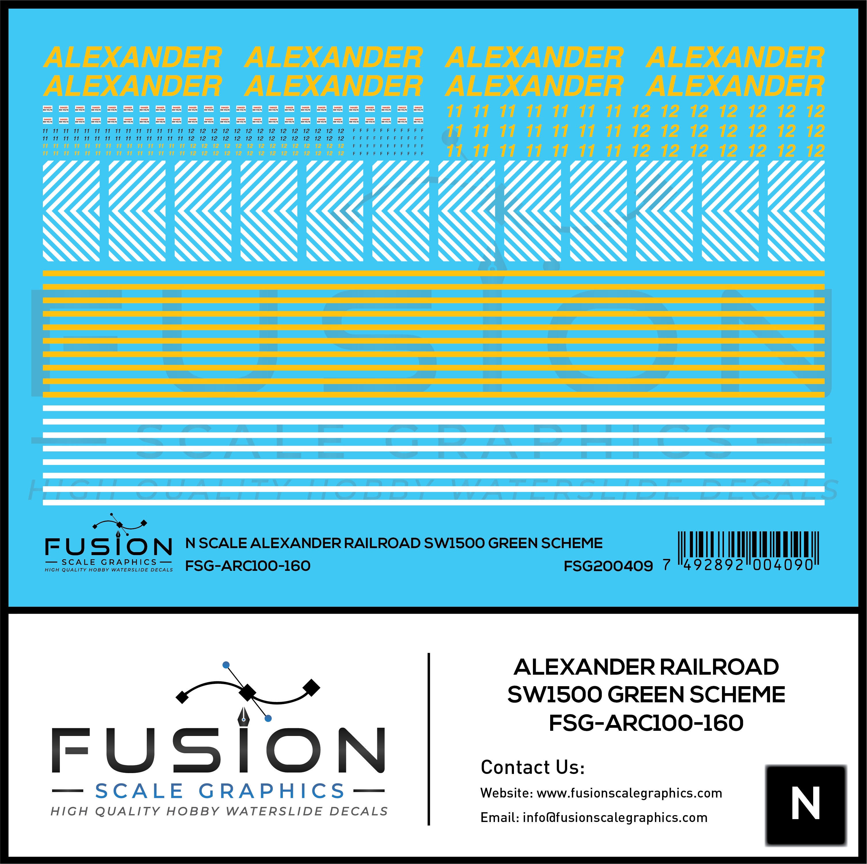 N Scale Alexander Railroad SW1500 Green Scheme Locomotive Decal Set