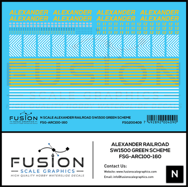 Alexander Railroad SW1500 Green Scheme Locomotive Decal Set