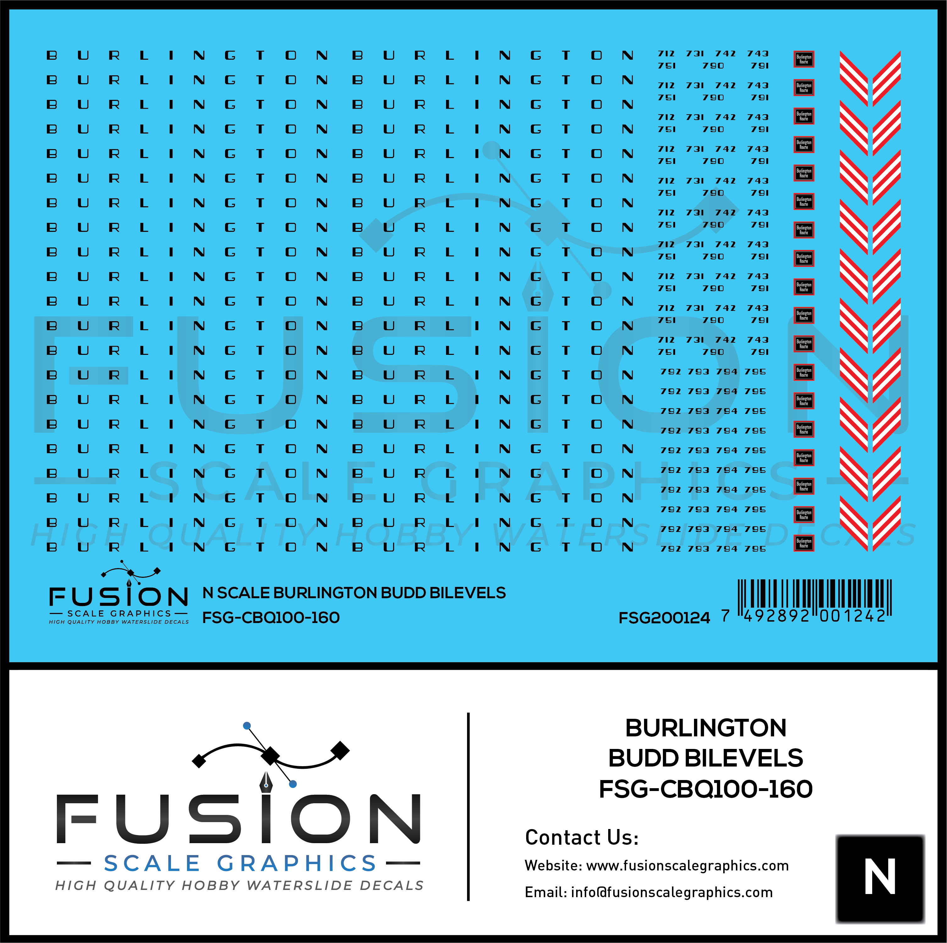 N Scale CBQ Burlington Budd BiLevels Decal Set