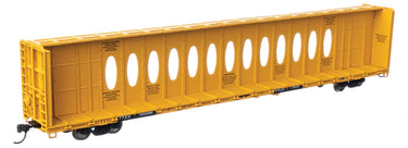 Specially designed to speed the loading and unloading of building materials, prototypes for the WalthersMainline 72' Centerbeam Flatcar have been favorites with shippers since the 1980s. The car's distinctive center partition adds stability to loads and was made in two versions, some with oval cutouts (called "opera windows") and "standard" construction of steel beams and rigging. The WalthersMainline model accurately matches the dimensions and look of its lumber hauling prototype. The HO car is also available in "opera window" and "standard" versions, as appropriate for each roadname.