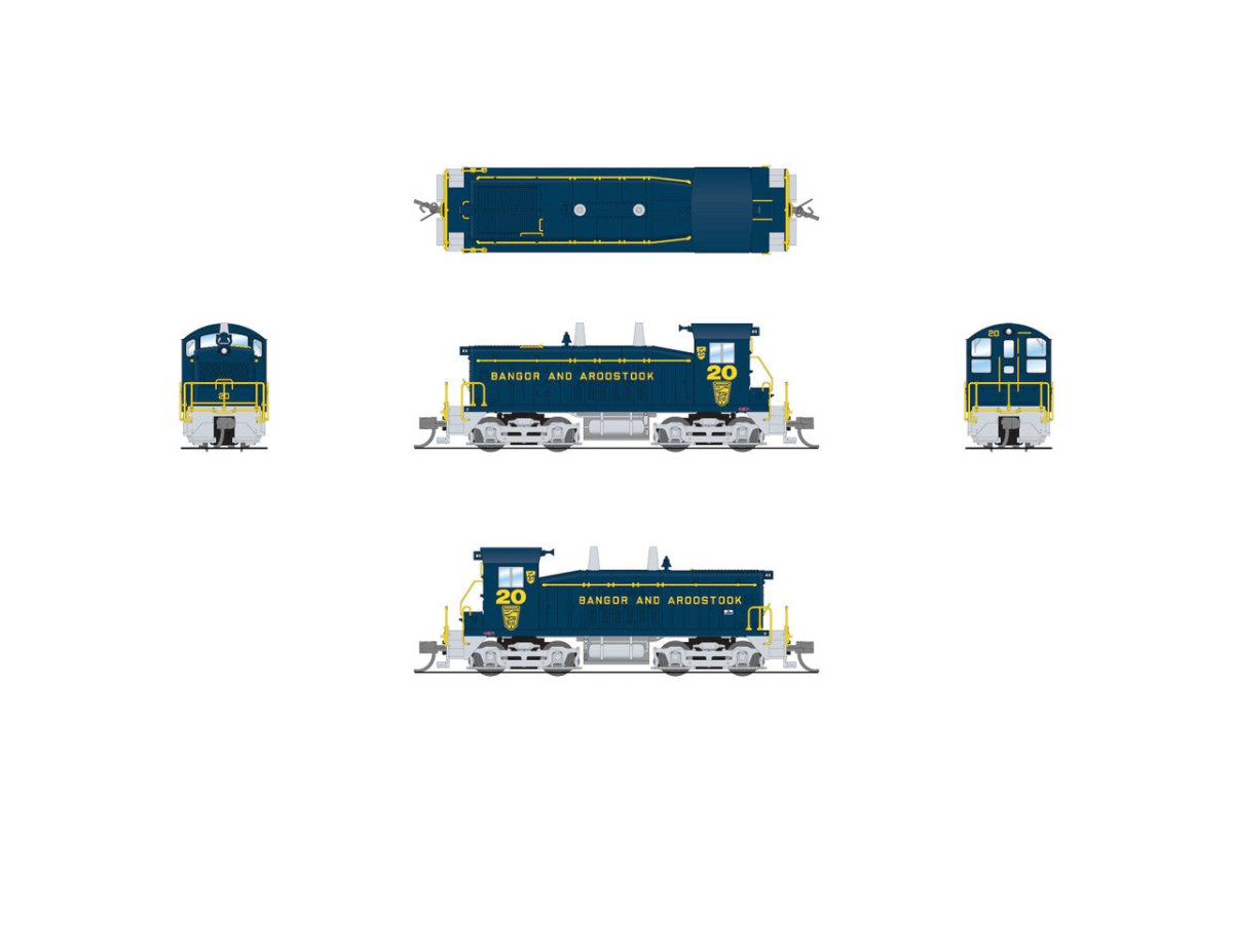 From February 1939 through December 1949, the General Motors Electro-Motive Division built 1,145 EMD NW2 1,000 horsepower switcher locomotives. The NW2 was widely popular, with more than fifty Class 1 railroads purchasing more than 1,100 NW2's. They were also popular with industries, and several were purchased by the US Navy. The NW2's were EMD's new 12-cylinder, 567A prime mover. The NW2 was 44 feet long and equipped with the standard B-B truck arrangement. Typical distinguishing features of the NW2 switchers include two stacks in the middle of the hood, a half-height radiator grill on the front, no sand box on the front platform, no small louvers at the front corners, and the tops of the front cab windows are curved to match the curve of the roof. Our model is of the phase V locomotives. The main difference between the Phase V and the Phase 1-4 NW2's is the slope of the long hood just ahead of the cab.