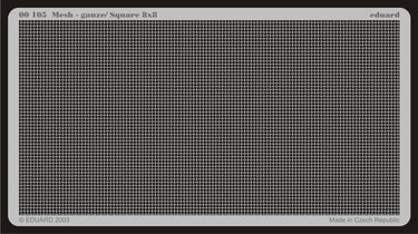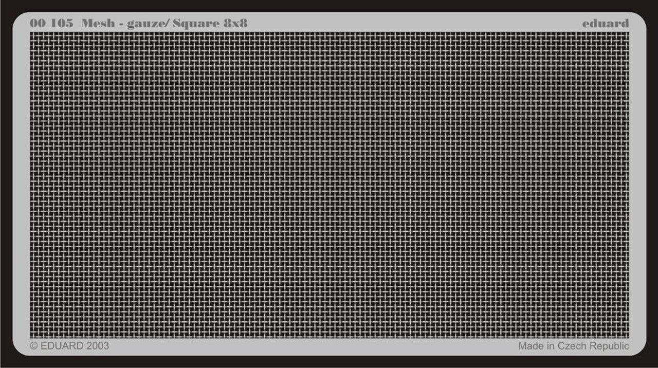 Gauze/square mesh with 0.6x0.6mm cell size. The usable area (meaning the mesh itself) is 123x63mm.