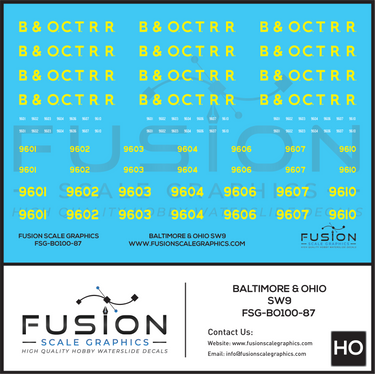HO Scale Baltimore & Ohio EMD SW9 Locomotives Decal Set