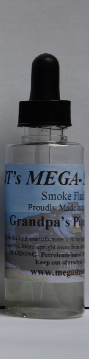 Mega-Steam Smoke Fluid Oil Fired Steam is Proudly Manufactured in the U.S.A. JT's MEGA-STEAM Smoke FluidTM!!!! Thick, dense smoke output yet it dissipates quickly, leaving little or no "train room fog" hanging in the air. NON-TOXIC. Comes in 2oz bottles with "pin-point" end glass droppers for accurate filling. All of our smoke fluids are scented just right, not too heavy, not too light***. Petroleum-based formula. Smoke itself is non-toxic Not suitable for use with Piko, LGB, or Massoth Suethe-Style Smoke Generators / Units.