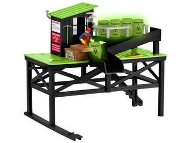 Grow your Area 51 collection with this Area 51 Hazardous Materials Barrel Loader!Fully assembled buildingIncludes six glow-in-the-dark barrelsGlow-in-the-dark materials charge up with bright lightingExterior illumination