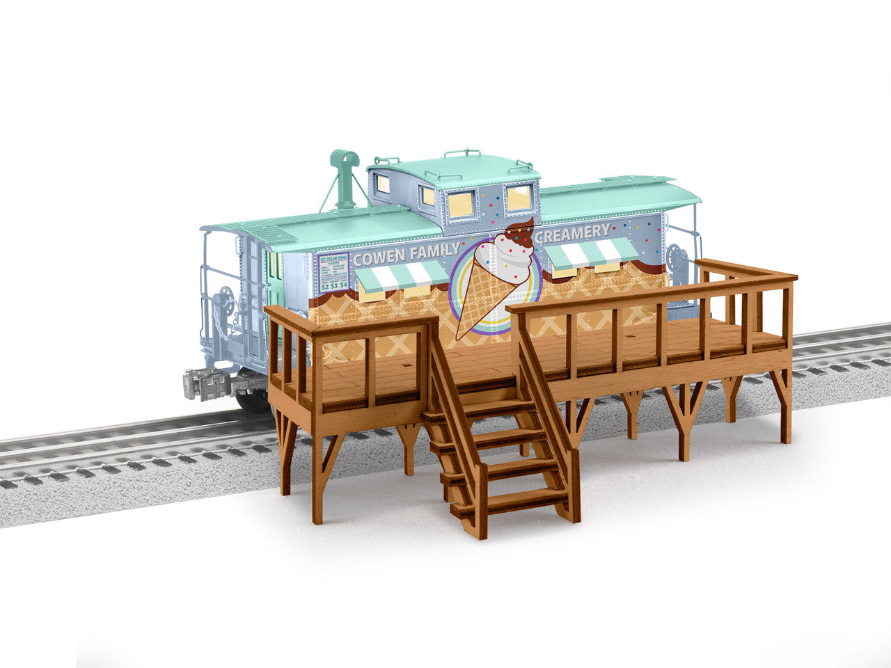 Enjoy a special treat along the rails with this Cowen's Family Creamery Caboose with Deck!Plug-Expand-Play 10" FasTrackLED Lighted InteriorDecking detail included, perfect for adding figures!