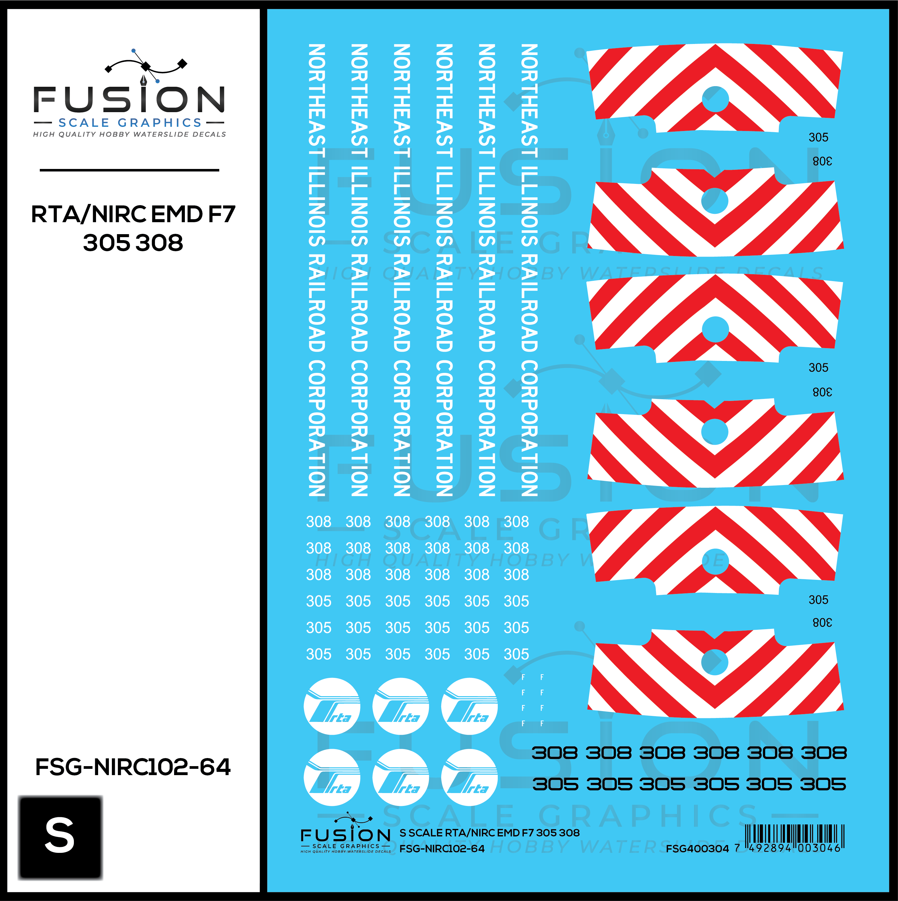 S Scale RTA/Northeast Illinois Railroad Corp EMD F7 305, 308 Locomotives Decal Set