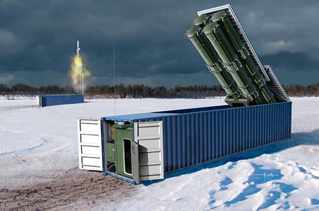 Club-K, container missile system is dedicated to fire at overwater and ground targets with winged missiles 3M-54TE, 3M-54TE1 and 3M-14TE.3M-54 missile has hypersonic third stage and hits the target with triple speed of sound. Container missile system can simultaneously fire at overwater and ground targets, that's is a main feature of the 'Club-K'.The 'Club-K' system is placed in standard 40-feet container, it can be installed on shore stations, overwater ships of different classes, trains, automotive stations. The 'Club-K' system consists of universal launch module (ULM), combat control device (CCD) and power and life-support module (PLSM).Universal launch module hosts the launch station with capacity for 4 missiles.