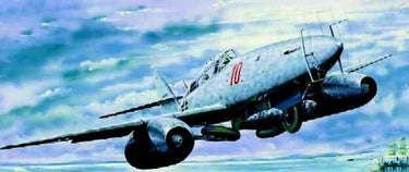 The Me262 was the first and only fully operational jet-powered fighter aircraft developed during World War II. Because of the special handling characteristics of a jet-powered aircraft verses a propeller driven one, a two seat training conversion became necessary. This was designated the Me262B-1a, and was equipped with a second seat for the instructor along with full dual controls, and a pair of external fuel tanks. The need for the night fighter version out weighed the extra time it took to complete the modifications, so therefore it was decided to simply adopt the trainer version by adding the FuG218 Neptun radar system and the FuG350 Naxos heat sensing unit, which allowed the fighter to track the exhaust of the British planes. This was designated the Me262B-1a/U1, and the first of these aircraft were delivered to the experimental night fighting unit Kommando Welter during February - March of 1945. This unit served in the defense of Berlin and became NJG11, but by the end of the war, they had only received a dozen of these new jet aircraft