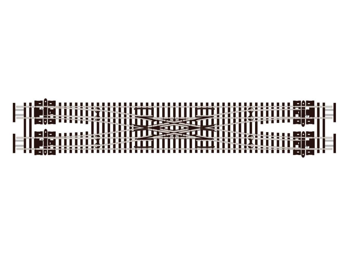 PECO Streamline N Gauge Code 55 - Universal Fine trackage systemDespite a low visible rail height of just 1.4mm, all brands of N Gauge model locomotives will run on this track.The ingenious rail section of PECO 55 combines strength and durability with a highly realistic appearance and uses the same universal rail joiners as Code 80; the geometry of this range has been cleverly designed to make it easy to build convenient, complex and aesthetically pleasing formations. For more details on wiring this Scissors Crossover unit, see our Wiring the Layout publications No 21.