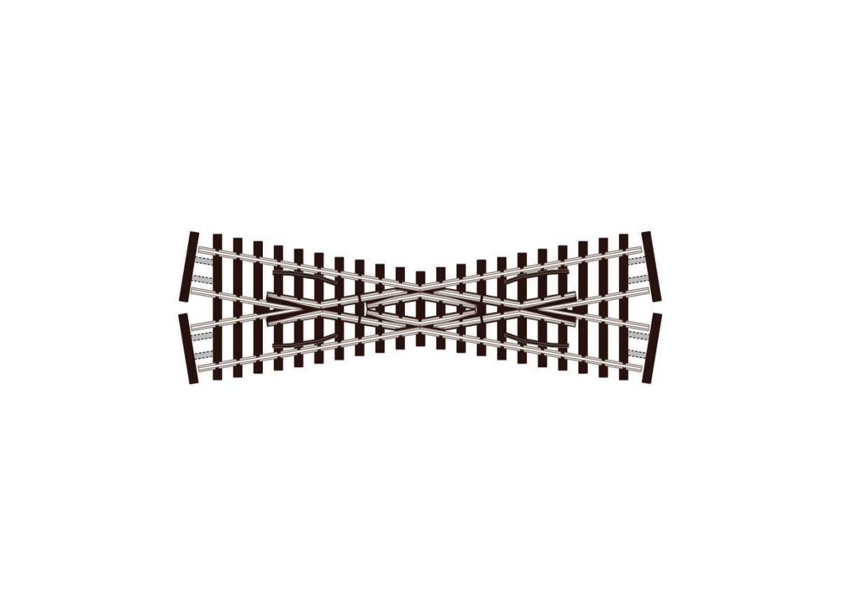 The Short Crossing is double the angle of other track components in this range, this enables it to be used to form scissors formations in conjunction with them.Despite a low visible rail height of just 1.4mm, all brands of N Gauge model locomotives will run on this track.The ingenious rail section of PECO 55 combines strength and durability with a highly realistic appearance and uses the same universal rail joiners as Code 80; the geometry of this range has been cleverly designed to make it easy to build convenient, complex and aesthetically pleasing formations. For more details on Electrofrog turnouts, see our Wiring the Layout publications Nos 4 and 21.