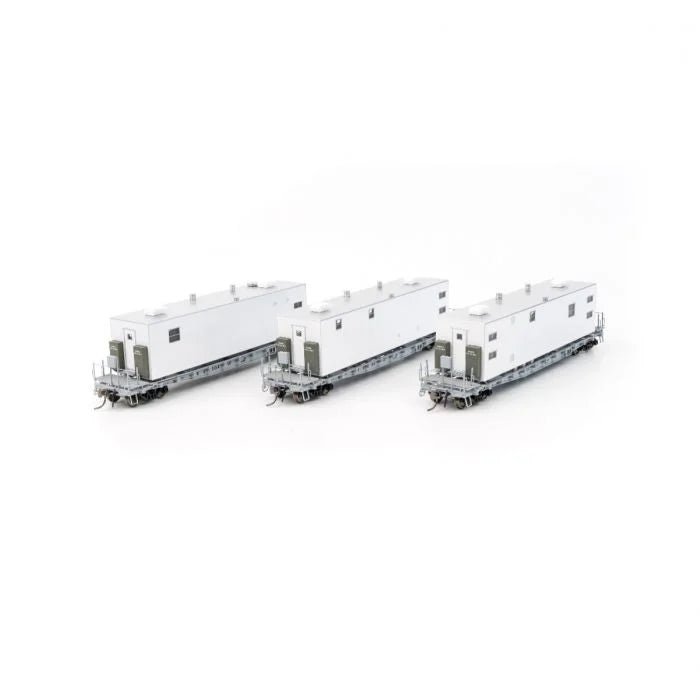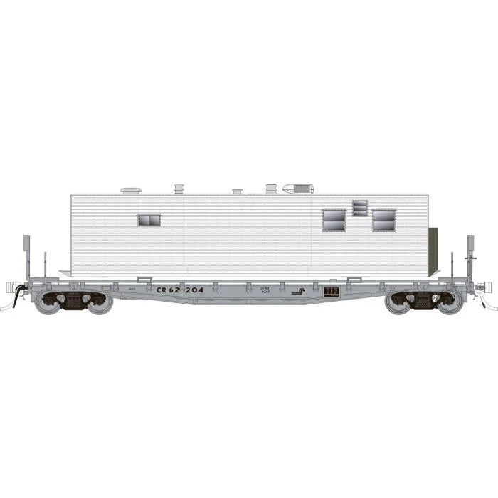 Conrail (and other railroads) mounted pre-fabricated “RV style” van on flat cars to house tack workers. Several common styles of van were built to serve the various needs of the work crews. Sleeping quarters were most common, but office and dining configurations were common sights in most work trains. These “Camp Trains” were common sights on Conrail and still on Norfolk Southern. Rapido’s camp cars are available in four different body styles: sleeper, diner, kitchen and office. In addition to vans mounted on F30A flat cars we offer each style van separately. They are perfect offices for yards, engine terminals, construction sites, in fact, all sorts of applications! Separate vans are painted in appropriate colors but are unlettered.