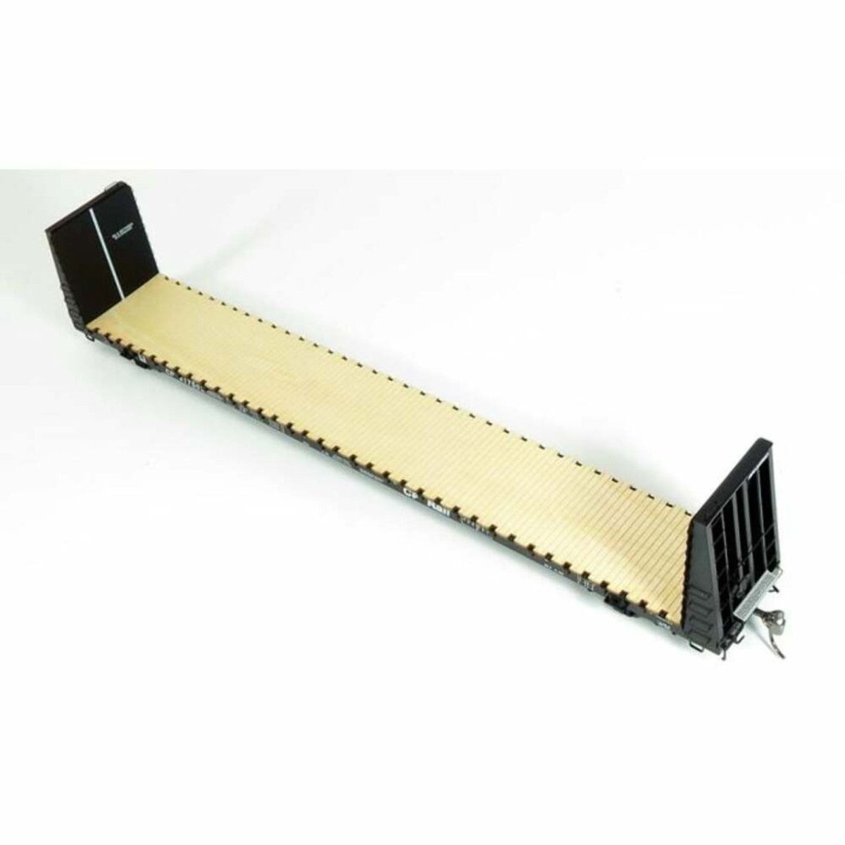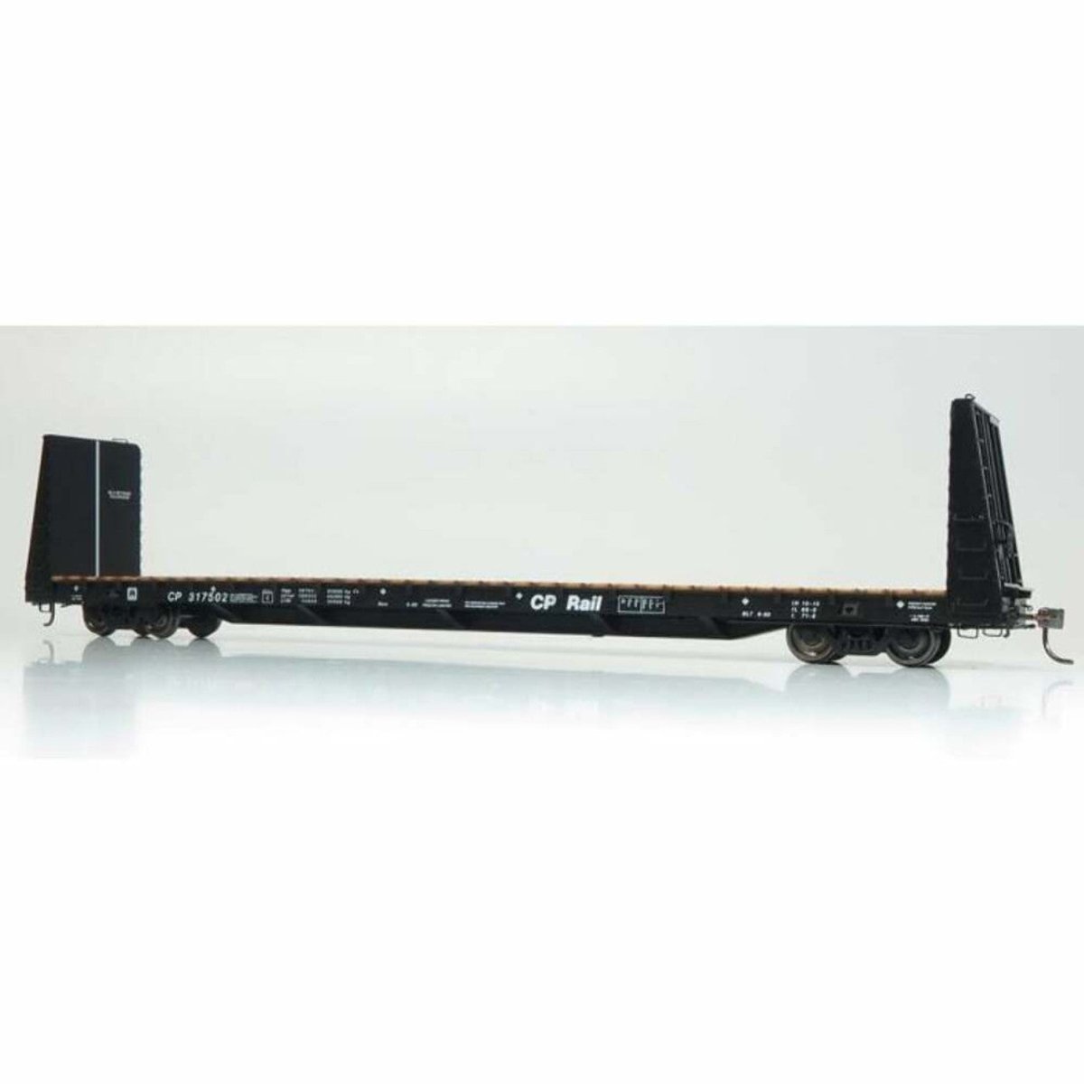 This beauty is the first accurate model of a Canadian 66ft bulkhead flatcar ever produced. For years Canadian modellers have had to put up with American prototype cars painted to represent these classic cars, but no more! Rapido's HO model is based on cars that were built in huge quantities in the 1970s to early 1980s, and will be right at home on any layout based from the late 1970s to today. This car design is a true work horse of the industry, loaded with everything from finished wood, building materials, sheet steel, pipe, structural steel, heavy equipment. These cars have been fitted with log bunks, stake sides for moving coils of wire, and canvas tops to protect cargo and many have rebuilt to center beam style cars. Model Features: