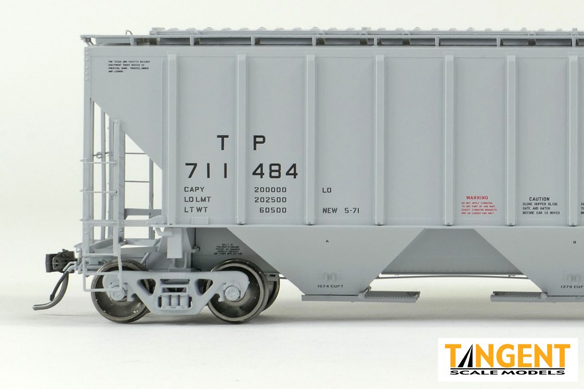 Tangent HO Texas and Pacific (TP) “Delivery Gray 5-1971” PS4427 “High Side” Covered Hopper #711571