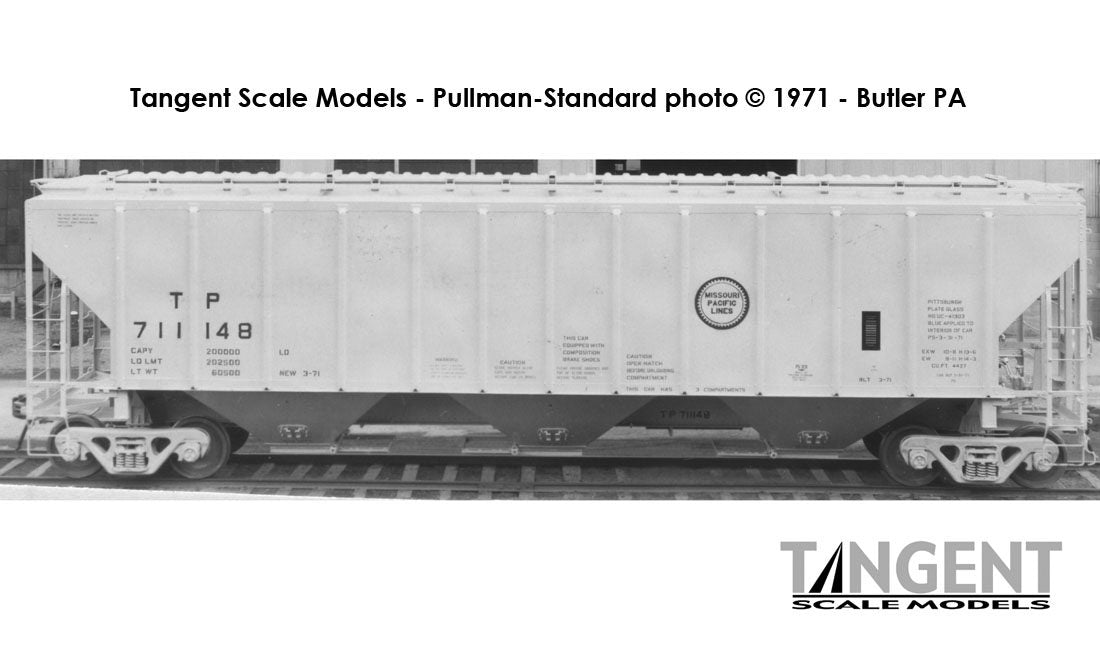 Home Shop Tangent Scale Models Tangent HO Texas and Pacific (TP) “Delivery Gray 5-1971” PS4427 “High Side” Covered Hopper #711571