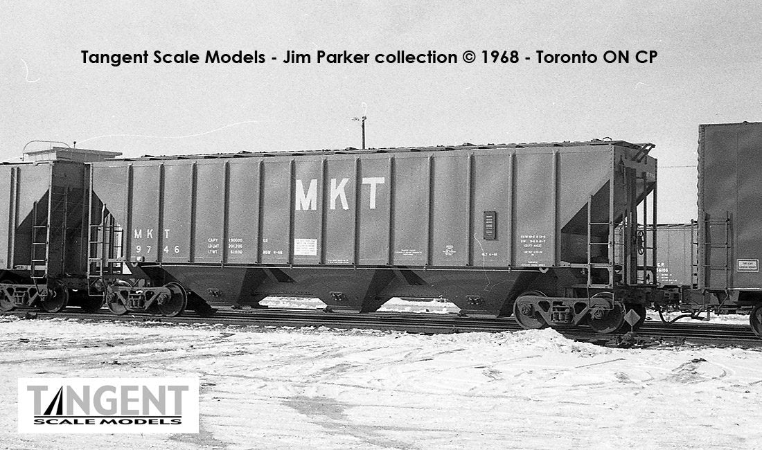 Tangent HO Missouri–Kansas–Texas (MKT) “Delivery Red 4-1968” PS4427 “High Side” Covered Hopper #9746