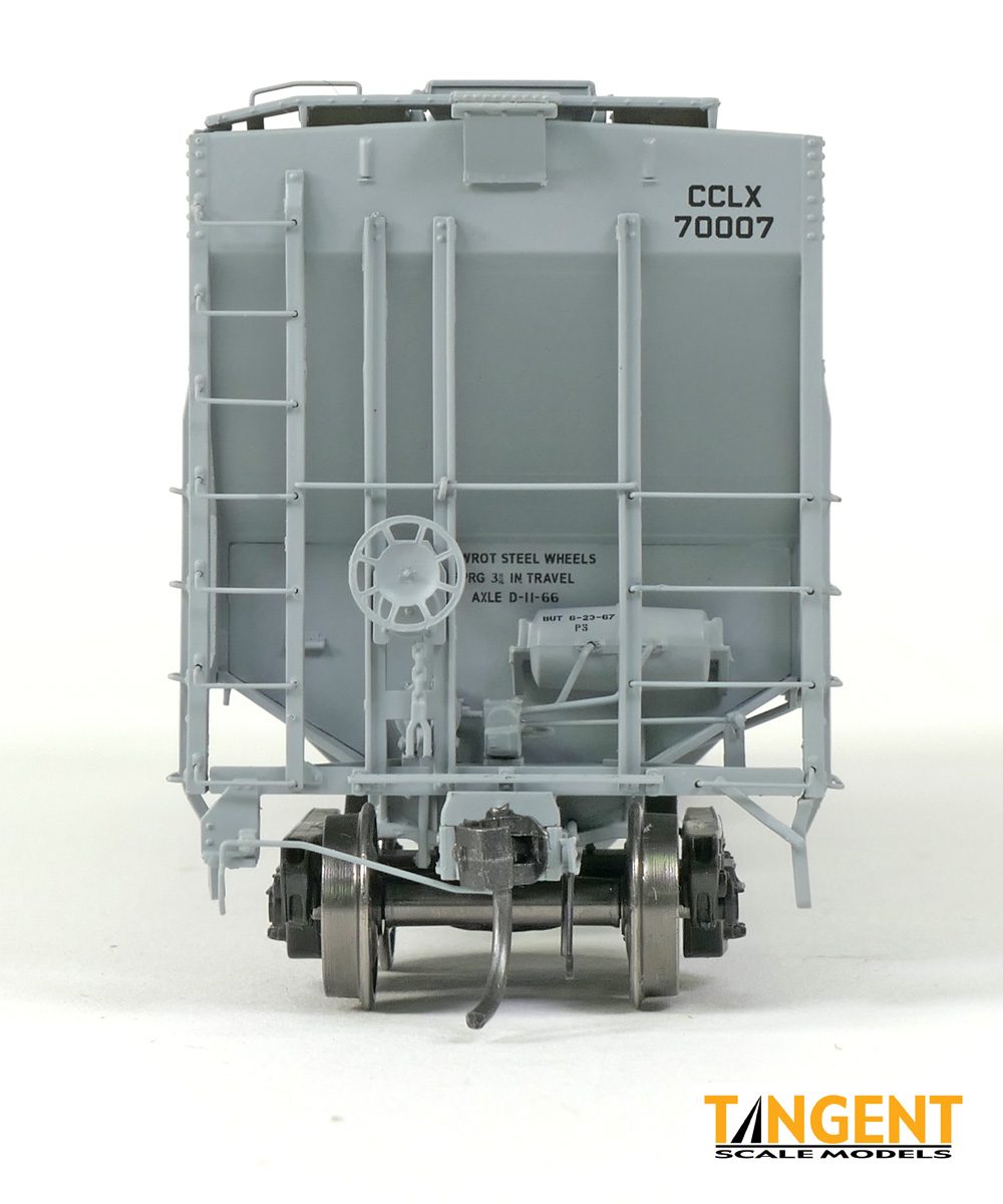 – CCLX “Corn Products Delivery 1967” wears the light gray paint of a car leased to Corn Products Company/Crystal Car Line. This small group of 16 cars feature the 1967 details of the PS4427, including the square-step style on the corner ladders and center sill supports between the bays. The distinctive “Corn Products Company” lettering style is reproduced carefully on this car, along with the accurate Pullman-style data. The model is equipped with 100-ton Barber S-2 trucks with correct truck-mounted cylinder details on the brake beams along with accurate (and rotating!) Hyatt caps.