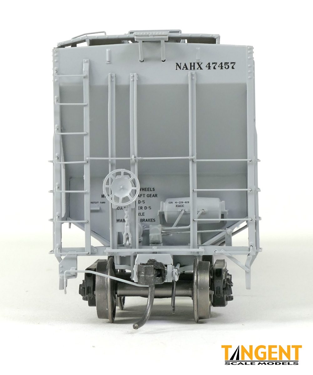 – NAHX “Morton Salt 6-1969” shows an interesting example of cars for North American Car Corporation’s lease fleet.  This group is leased to Morton Salt Company by NAHX and the cars carry an interesting mix of dates: Built in 4-69, a liner applied for salt service in 5-69 and a NEW date of 6-1969!  Of course, this accurate data is all shown in the prototype photo on the website.  If you look closely, you can see the white/red/black North American Car Co. badge and trust plate.  The bays are equipped with Youngstown EZ-Roll gravity gates.  NAHX cars are always interesting because of their mix of lettering styles and Lessee logos.  This is a great example of private leased covered hoppers carrying a non-grain commodity