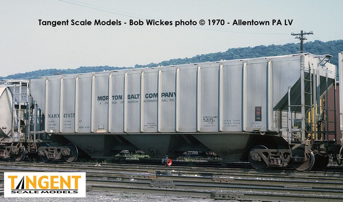 Home Shop Tangent Scale Models Tangent HO NAHX “Morton Salt 6-1969” PS4427 “High Side” Covered Hopper #47473