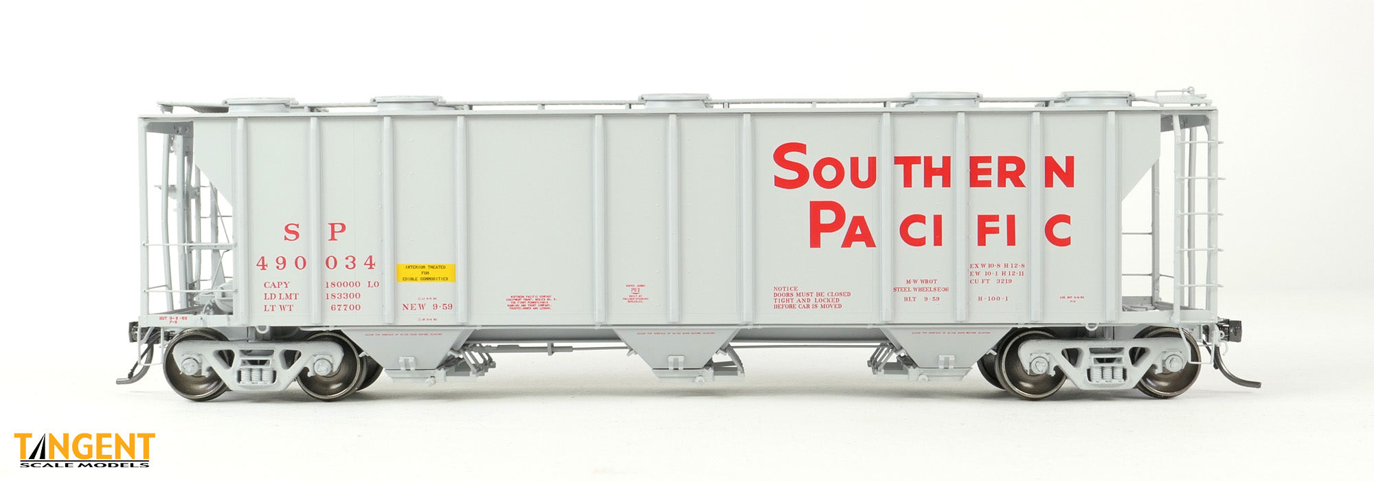 Home Shop Tangent Scale Models Tangent HO Southern Pacific (SP) “Delivery Gray H-100-1 9-1959” Pullman-Standard PS-2 3215CuFt Covered Hopper