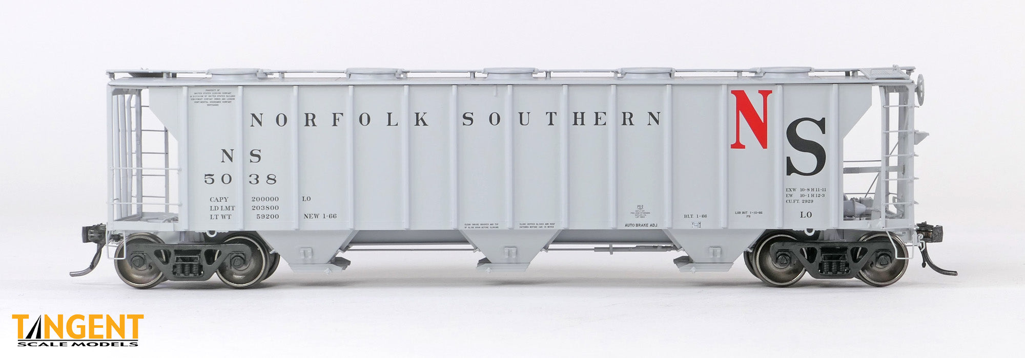 Tangent HO Norfolk Southern (NS) “Delivery Gray 1-1966” Pullman-Standard PS-2 2929CuFt Covered Hopper # 5047