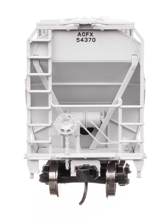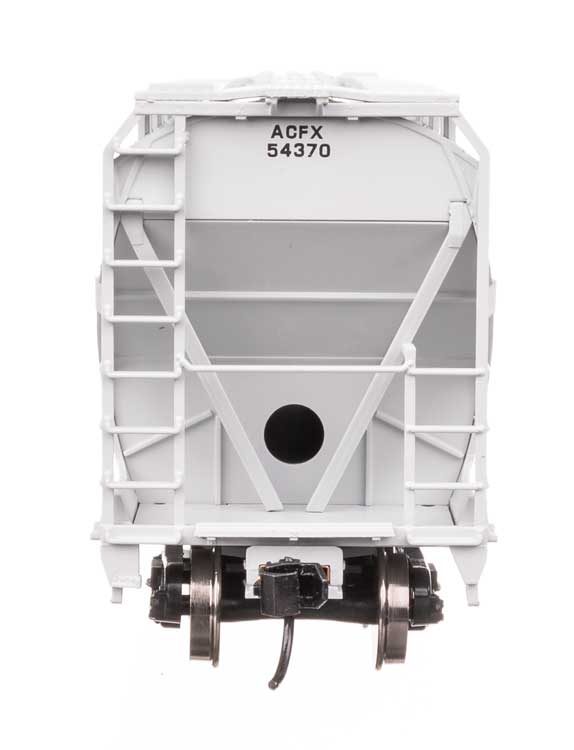 The 50' ACF 5250 Centerflow covered hopper hauled plastic pellets, grain and feed from the 1960s into the 2000s. Based on the American Car & Foundry 5,250 cubic foot capacity design, the models feature trough or round hatches and gravity or pneumatic gates as appropriate. These models feature: