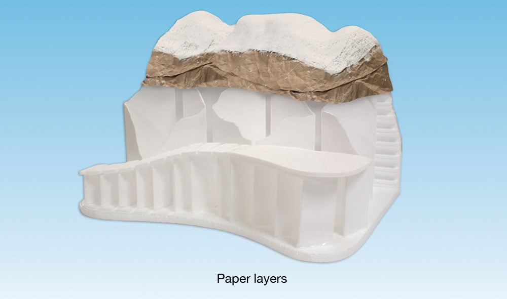 Use No-News Paper to build terrain and substructure in preparation for a plaster shell. No-News Paper is heavier than newspaper, offering stronger support and requiring less paper when making wads. Convenient to store.