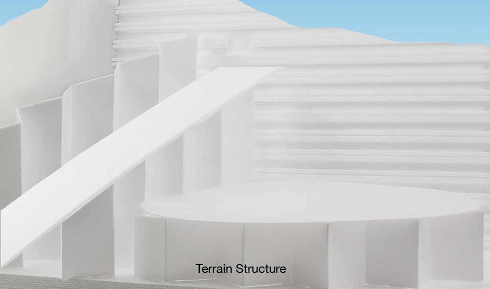 Make impressions or score easily to add special features, use for tunnel walls, create flat surfaces for buildings and water areas, make building facades and backdrops or use for arts and crafts.