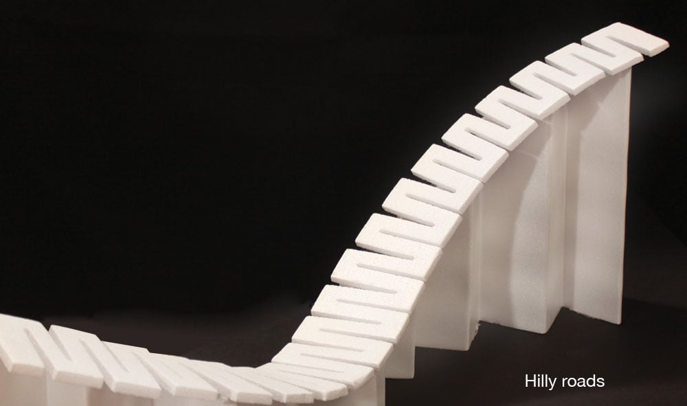 Use Road Riser to establish an elevated road base and instantly set a flat surface for your roads or highways. Road Riser flexibility allows for modeling winding and hilly roads quickly and easily. Aligns easily with 1/4" Modeling Sheet or set on top of 2" Support Panels.