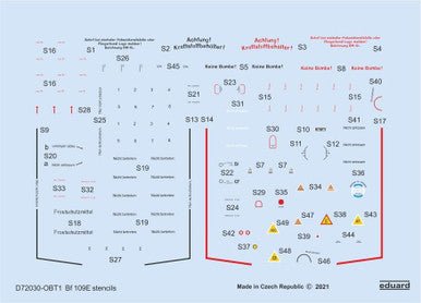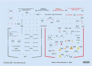 1/72 Eduard Bf 109E stencils for SPECIAL HOBBY/TAMIYA/AIRFIX