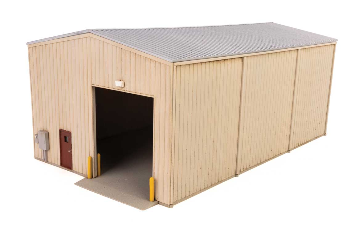 Model the vital transition of cargo between railcars and trucks with incredible detail with this Corn Syrup Transfer Facility. Corn syrup is used in baked goods, candies, beverages, canned fruits and vegetables and pharmaceuticals. The liquid is transloaded from tank cars to storage tanks, then into tanker trucks for delivery to industries. Corn syrup benefits from steam heat to help it flow so small boilers are a common feature of sites like this. Trucks pull into the transfer garage to make the transload under cover from the weather. Of course the site manager needs a place to do paperwork and a converted shipping container makes a great office. This kit includes: