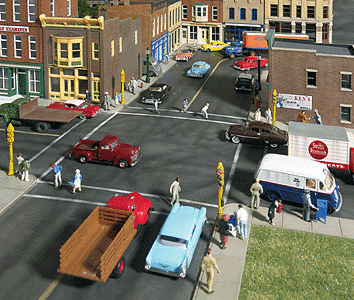 Complete set includes approximately 25" 63cm of roadway, along with parts for one complete intersection, sidewalks, curbs, driveway and alley entrances, plus complete instructions.